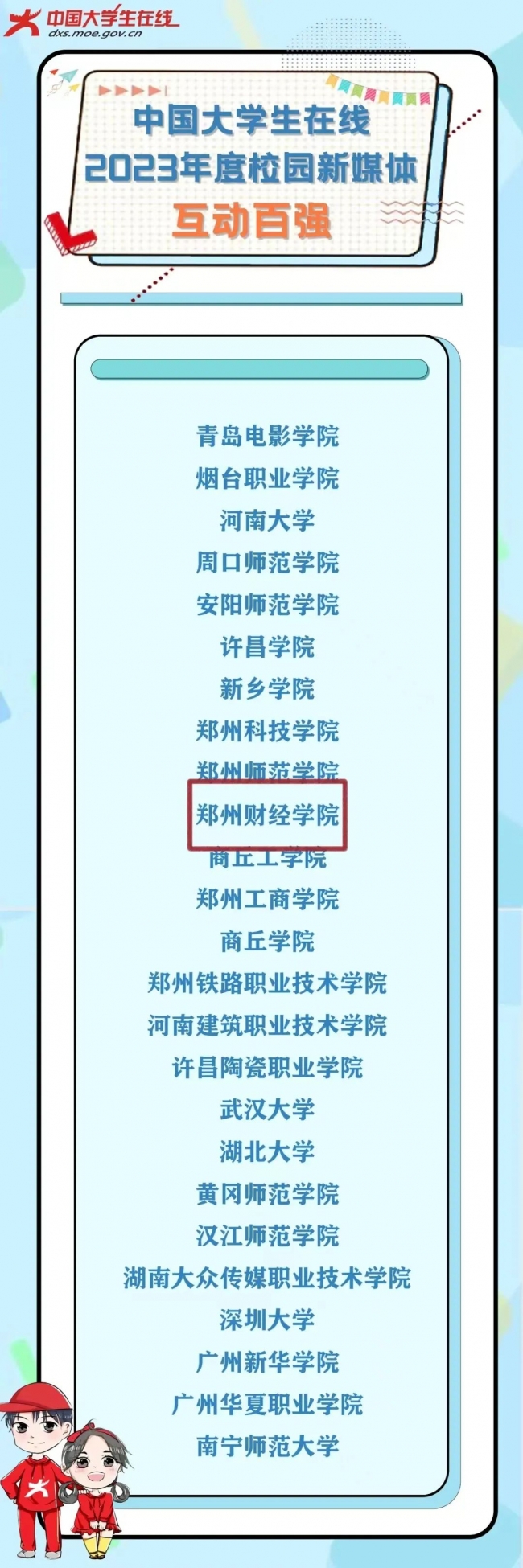 近日,教育部中国大学生在线公布2023年度校园新媒体表彰名单,beat365荣获“校园新媒体互动百强”荣誉称号。