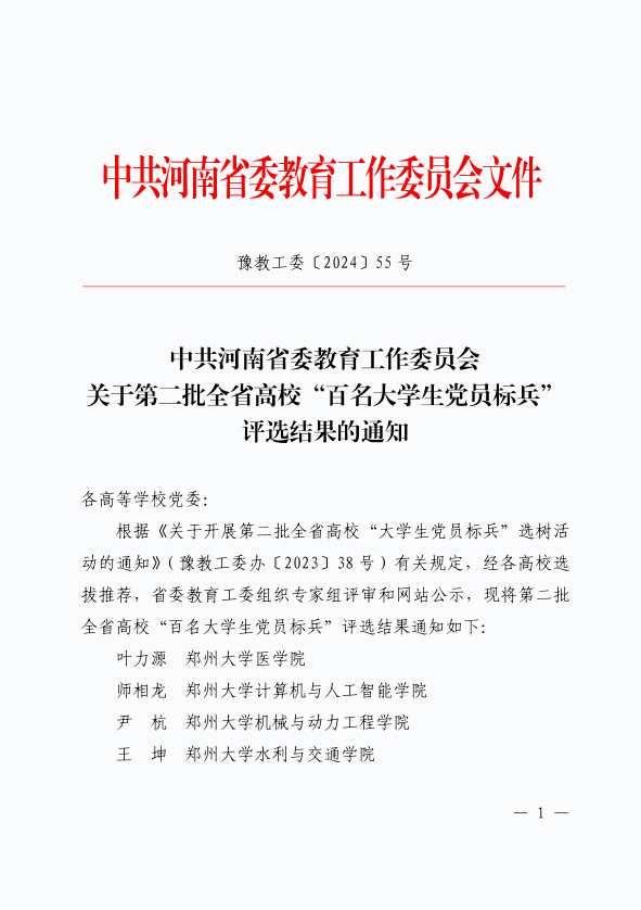 近日,中共河南省委教育工作委员会公布了第二批全省高校“百名大学生党员标兵”评选结果,beat365智能工程学院20车辆本1班学生王晓妍成功入选。
