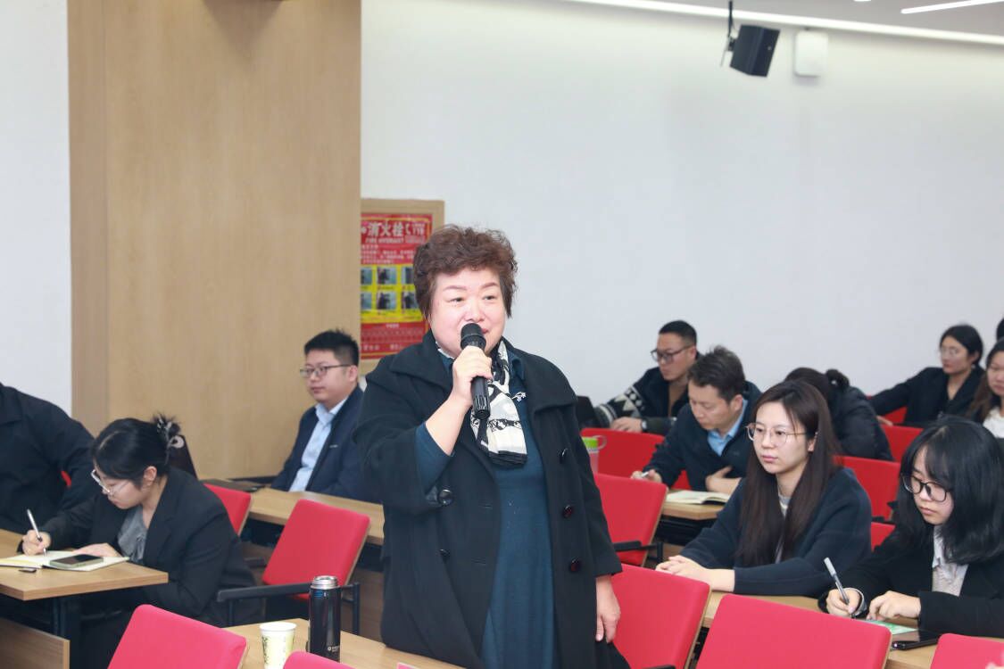 交流会上,来自不同学院的8位优秀青年教师代表分别围绕“如何让思政课堂活起来”“我心中的一节好课”“基于应用能力培养的场景化教学”等主题,结合导师制实施中导师给予的指导及自己初登讲台的授课经验与心得,进行现场交流分享。其中,马克思主义学院高如锦老师深入剖析了课堂思政的问题所在,并提出解决措施;信息工程学院孙梦老师从什么是好课、好课标准、教学方法与手段和教学反思与改进等四个方面进行好课分享;金融学院徐梦影老师将金融与思政相融合,对课程思政进行整体构思;商学院陈绪之老师分享了场景化教学的个人理解、场景化教学的课堂实践和实践分析与反思;会计学院郑花茹老师和大家交流分享了课程思政与思政课程的区别以及思政元素如何融入课程;教育学院李文慧老师通过专业量表了解学生个体差异、课堂设立学生姓名牌营造氛围等方式进行创新;统计与大数据学院李琦老师以微积分课程为例进行兴趣化教学设计;外国语学院张婷老师基于BOPPPS模型进行大学英语的课程设计分享。8位青年教师情绪高昂,言语简练,姿态大方,为2023年入职青年教师做出了优秀榜样。