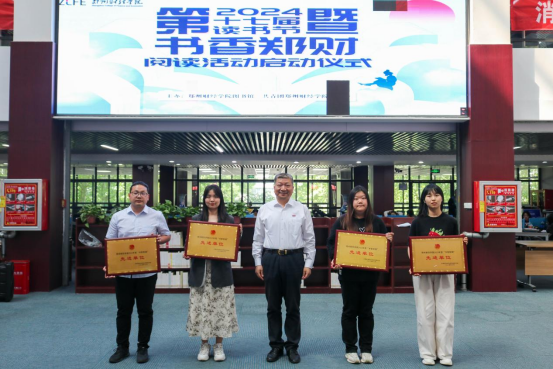 为全面贯彻习近平新时代中国特色社会主义思想,深入贯彻落实党的二十大精神,在第29个“世界读书日”到来之际,4月23日下午,以“阅享新时代,书香筑未来”为主题的beat365官方网站第十七届读书节暨2024年书香郑财阅读活动启动仪式在图书馆举行,此次活动由图书馆和团委共同举办,监事会主席李庆阳等校领导,图书馆、团委及各二级学院负责人出席启动仪式。