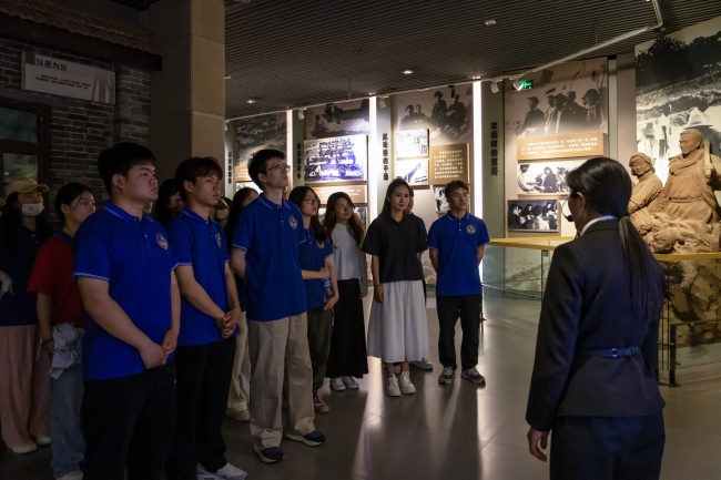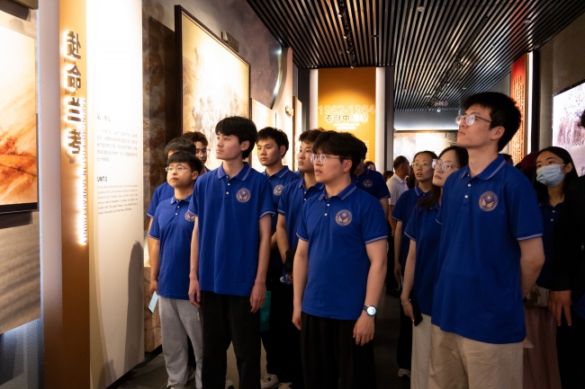 4月26日上午,“秋实班”学员同国旗护卫队队员到达焦裕禄纪念馆,在讲解员的引导下,学生们深入学习并践行焦裕禄精神,深刻领会焦裕禄精神在现代化建设中所发挥的特殊意义并自觉发扬光大。
