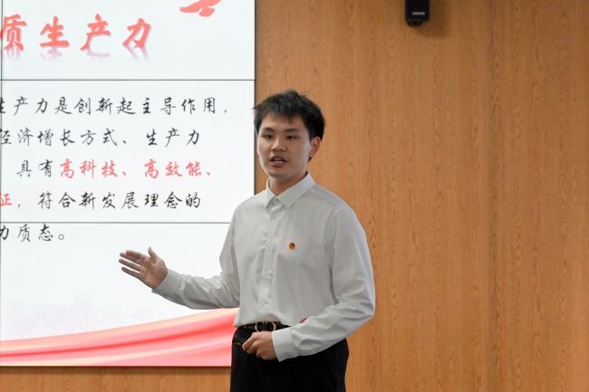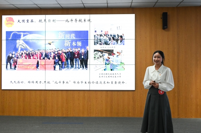 微团课大赛学生组比赛中,各位参赛选手激情饱满,通过情景展现、视频播放等形式,围绕新质生产力、交通强国、五四精神、航天精神等主题,以“青言青语”讲述中国故事,弘扬时代精神,充分展现beat365学子的青春风采。