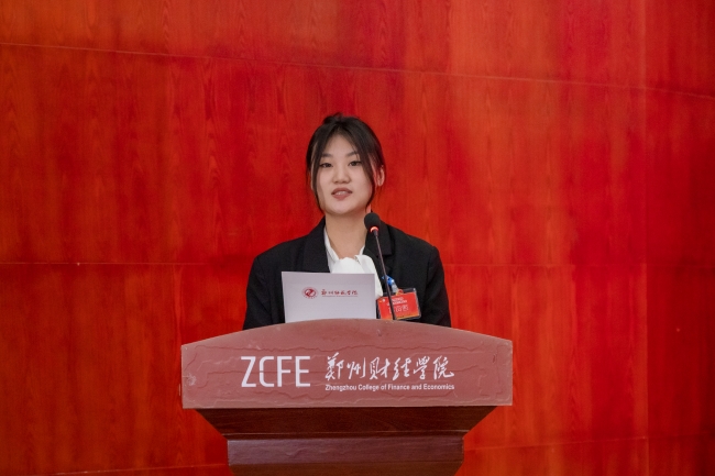 郑州师范学院学生会主席团成员魏思琪上台致辞
