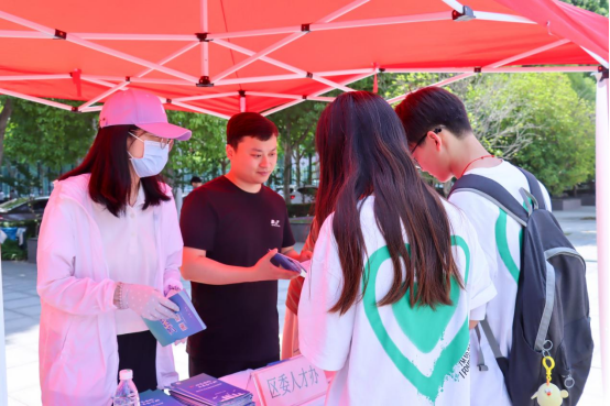 郑州市惠济区委人才工作领导小组办公室、惠济区人力资源和社会保障局、共青团惠济区委来校设置就业咨询台,为毕业生现场开展就业创业政策宣传,解答相关问题。