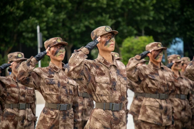 随后,全体队员共同合唱《打靶归来》,各个方队神采奕奕、队列有序,高亢激昂的曲调引领同学们走进热血的军旅情境,他们用激昂奋进的声音,演绎了对五星红旗的无比敬仰和对祖国的浓浓挚爱。