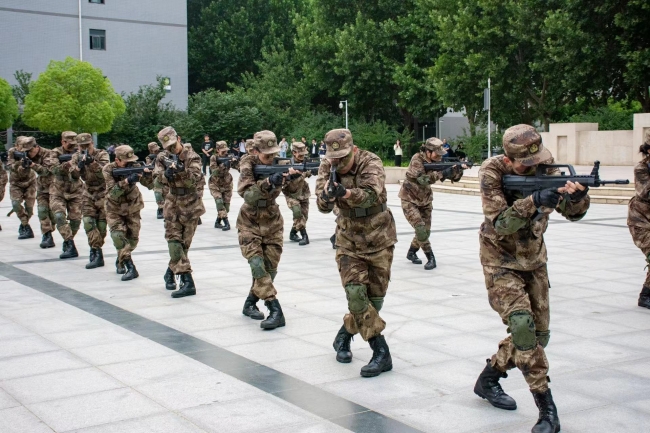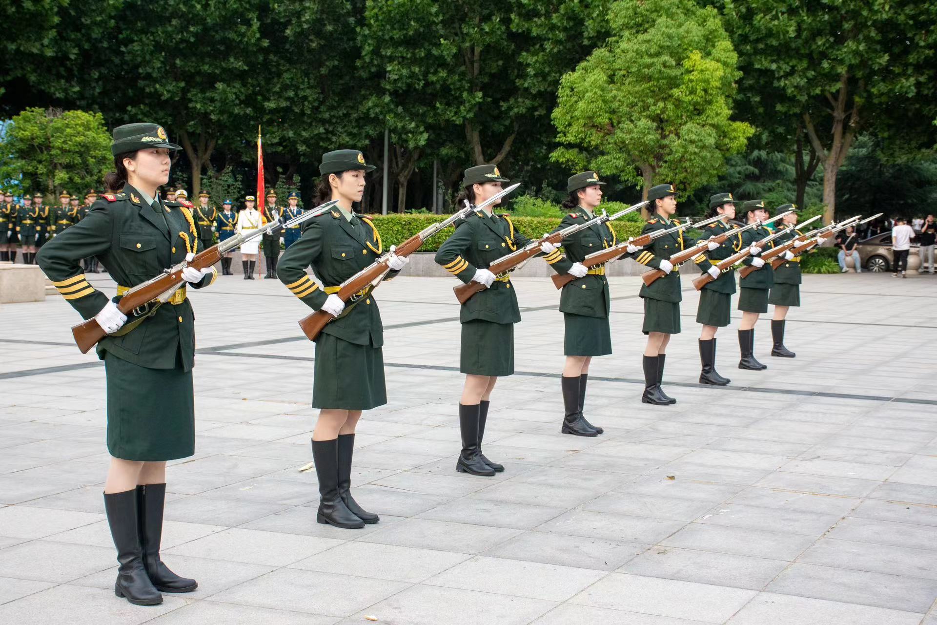 队列展示环节中,队员们的动作整齐划一,展现出高度的纪律性和专业性。男子擒敌拳刚猛有力,一招一式都充满力量;女子方队匕首操英姿飒爽,尽显巾帼风采;格斗开棍表演更是惊心动魄,令人热血沸腾;女子枪操表演中,队员们动作娴熟,英气十足;男子战术表演则充分体现了团队的协作与果敢。