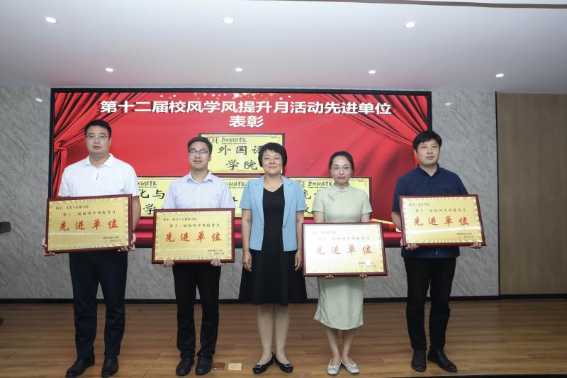 参会领导分别为本次校风学风提升月活动评选出的先进单位、先进个人及先进班级获奖代表颁奖。