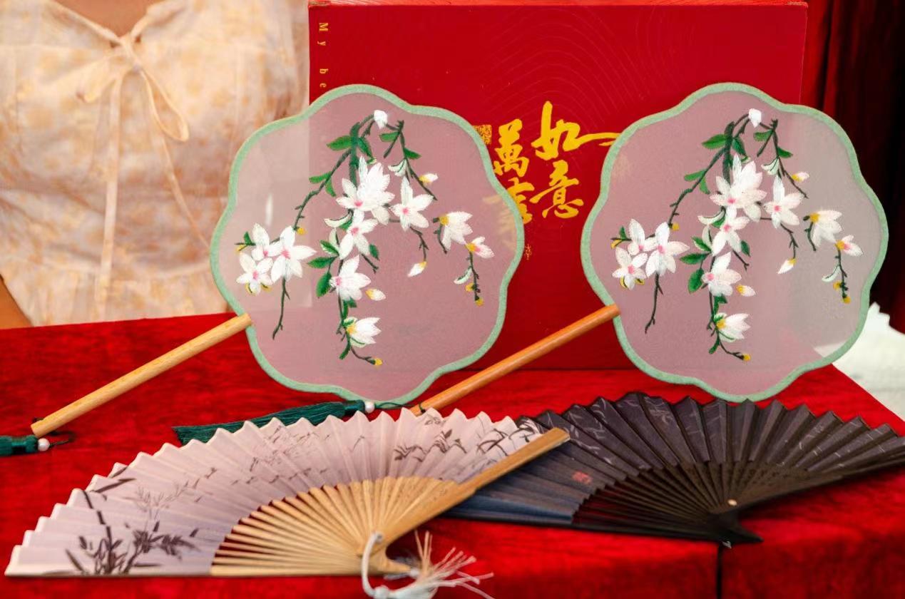 副校长陈静、校团委书记周二涛参观社团传统文化创意展品