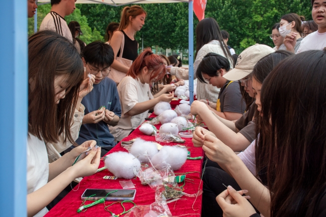 在社团文化节现场,陈列着精美的绘画、书法和手工艺品等,汇聚全校各个社团的创意与智慧,师生们在欣赏和体验过程中,领略传统文化的博大精深和劳动教育的魅力,充分感受到beat365学生社团的蓬勃发展与无限活力。