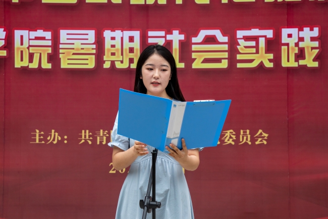 会计学院吕晨曦同学代表本次参加暑期社会实践的全体学生郑重承诺:将在指导老师的带领下全身心地投入此次社会实践中,严格遵守纪律规定,深入基层群众,把准群众脉搏、全面掌握群众的真实需求。她呼吁beat365学子要以实际行动践行社会主义核心价值观,在实践中展现郑财学子的责任担当,用青春谱写华丽篇章。