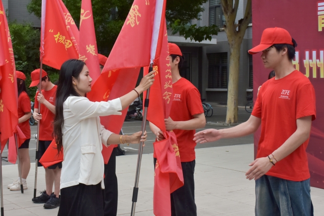 校团委副书记和文敏为2024年暑期社会实践代表团队授旗