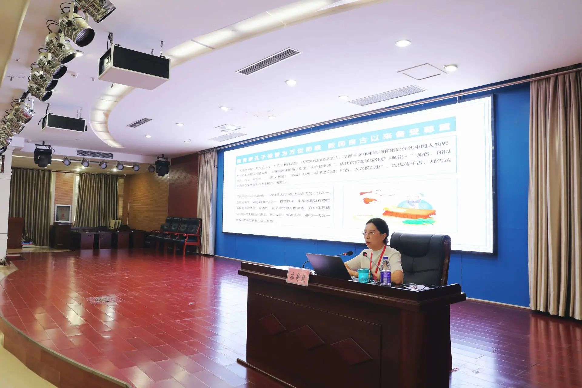 河南大学党委教师工作部副部长赵炎以《树良好师德师风,做师生满意的好老师》为题作讲座。她从师德师风建设的重要性着手,结合师德师风建设相关文件,辅以丰富的实践案例,分析了当前师德师风建设面临的新形势、新挑战。她强调要高度重视师德师风建设,要深入学习贯彻习近平总书记关于师德师风的重要指示精神,落实教育部和省教育厅有关师德师风建设的要求,深刻理解师德师风问题“零容忍”“一票否决”的严肃性,在深学笃行中坚定理想信念,提高理论素养。