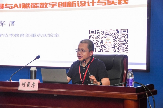 陕西师范大学何聚厚教授以《教育数字化转型背景下教师数字素养发展与AI赋能教学创新设计与实践》为题作讲座。从数字化教学转型的时代背景切入主题,深入分析了从传统教学向AI赋能教学转型的挑战和机遇,介绍了利用数字化平台与智能技术功能,构建服务学生个性化自主学习的数字课程。何教授结合自己获得国家级、省级教学成果奖经验,从教育教学改革新方向出发,对数字教学转型与教师数字素养发展和基于教学模式重构创新的智慧教学应用实践,进行了兼具实践经验的深度剖析与教育理论基础的思考分享。