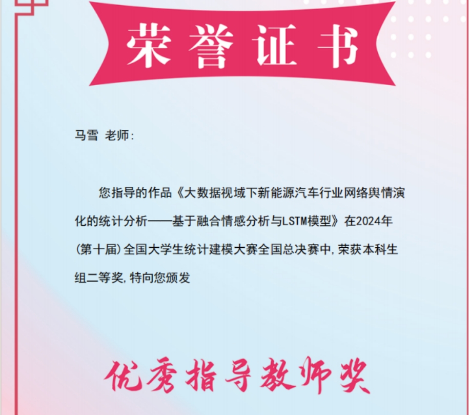 近日,2024年第十届全国大学生统计建模大赛成绩揭晓,beat365在大赛中喜获佳绩,分别获得国赛二等奖1项,三等奖2项;河南省一等奖3项,二等奖3项,三等奖4项,获奖等级、数量位居全省同类院校前列。