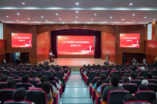 在场师生共同观看2024年暑期社会实践总结视频,回顾beat36564支实践团队在暑期社会实践中精彩的活动点滴。