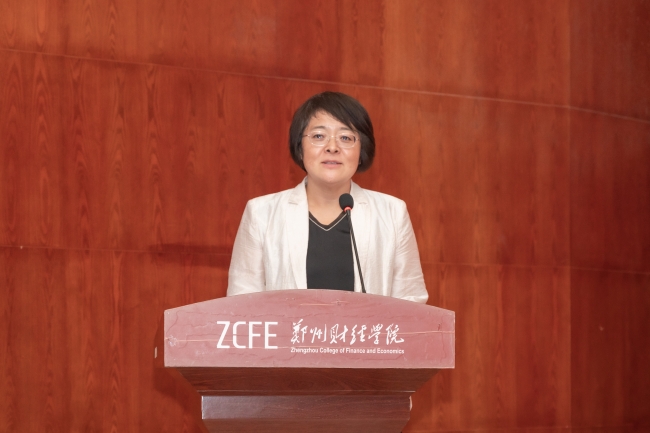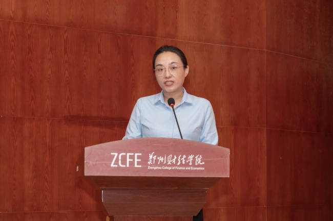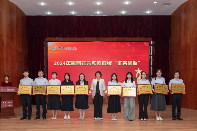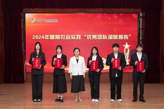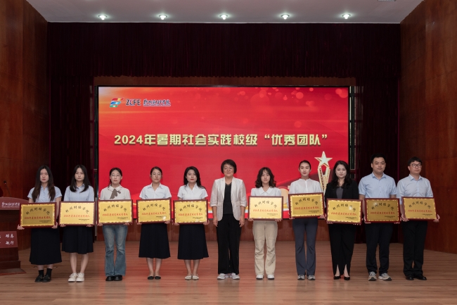 监事会副主席兼教务处处长王艳珍为暑期社会实践“优秀团队调研报告”代表颁奖