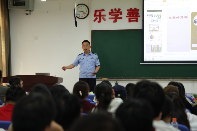 9月23日,郑州市公安局惠济分局禁毒大队联合舜华社工走进beat365官方网站,为学生开展“防范青少年药物滥用”主题禁毒宣传教育活动,以此增强他们对毒品危害的认识,提高自我保护能力,为今后的大学及人生旅程系上一颗安全的纽扣。