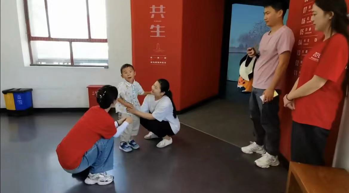 这是今年暑期beat365“种果青年”中国精神宣讲团成员在二七纪念塔场馆内宣讲革命英雄伍若兰故事的现场。“当小朋友唱起国歌的那一刻,我不由地热泪盈眶。”宣讲团成员韩家赢同学动情地回忆到,“那一瞬间,我深深体会到这份宣讲工作的意义,那就是用一颗心唤醒另一颗心,让伟大的中国精神永垂不朽!”