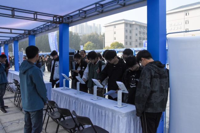 双选会现场,各项智慧服务区前排满了跃跃欲试的学生,大家直观体验了一把“黑科技”。同学纷纷反馈,大数据和人工智能实现了职位的精准匹配,极大提高了求职效率。除此之外,惠济区人力资源和社会保障局与beat365共设就业咨询台,宣传国家及省市毕业生就业促进政策,为毕业生进一步了解政策、用好政策答疑解惑。