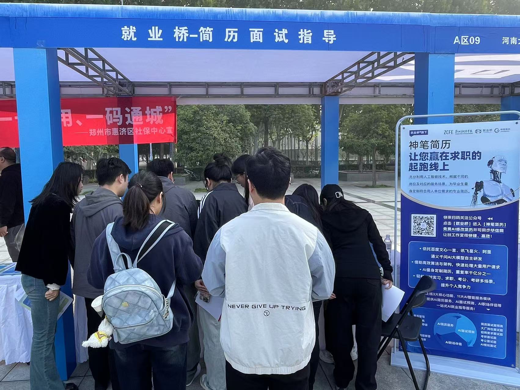 本次活动还联合就业桥特别设置了AI简历面试指导服务站,融合AI模拟面试与AI简历修改功能,“智慧元素”满满。借助AI大模型可以帮助学生快速创建符合自身经历和求职意向的简历,进行简历个性化定制;数智化模拟面试则帮助学生随时进行面试流程的体验和面试能力的提升,助力学生增强求职技能和求职成功率。同时,会场设置招聘企业“二维码墙”,学生扫码即可了解企业信息并进行求职,为毕业生、用人单位搭建一体化服务平台。
