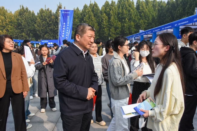 校监事会主席李庆阳及副校长陈静、卢文邦深入双选会现场指导工作,了解企业的招聘情况、用人标准以及对学校人才培养和就业服务的意见和建议等,并与学生亲切交流,鼓励学生积极求职、勇敢尝试,实现人生理想。