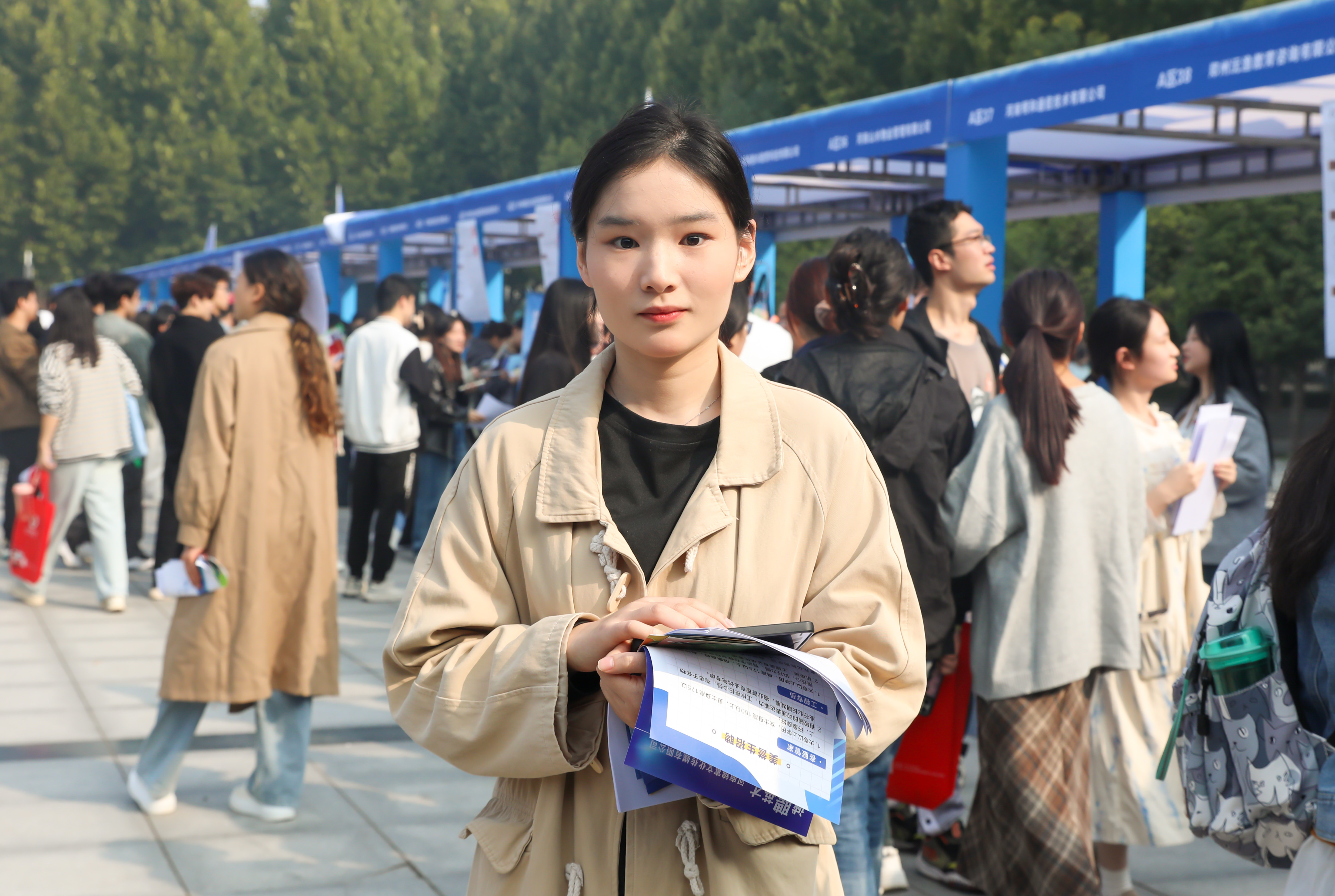 “这次双选会,对我来说是一次全新的体验,感觉真的很不错。”此行,王怡婷怀揣着一颗探索市场、提前洞察工作情况的心。在她看来,双选会不仅是一个求职的平台,更是一个了解行业、认识自我的窗口。她说:“因为很多同学都在场,所以也不是特别紧张,大家都没有什么工作经验,主要是来咨询和学习的,然后再进一步确定自己的就业方向。”她分享了自己的面试经验,鼓励大家在面试时,一定要大胆自信,这样才能吸引面试官的目光,获得更多的机会。她勉励学弟学妹们在大学这宝贵的四年时光里,不仅要专注于专业学科的学习,更要广泛涉猎课外知识,拓宽自己的视野。只有这样,才能为将来的就业打下坚实的基础。