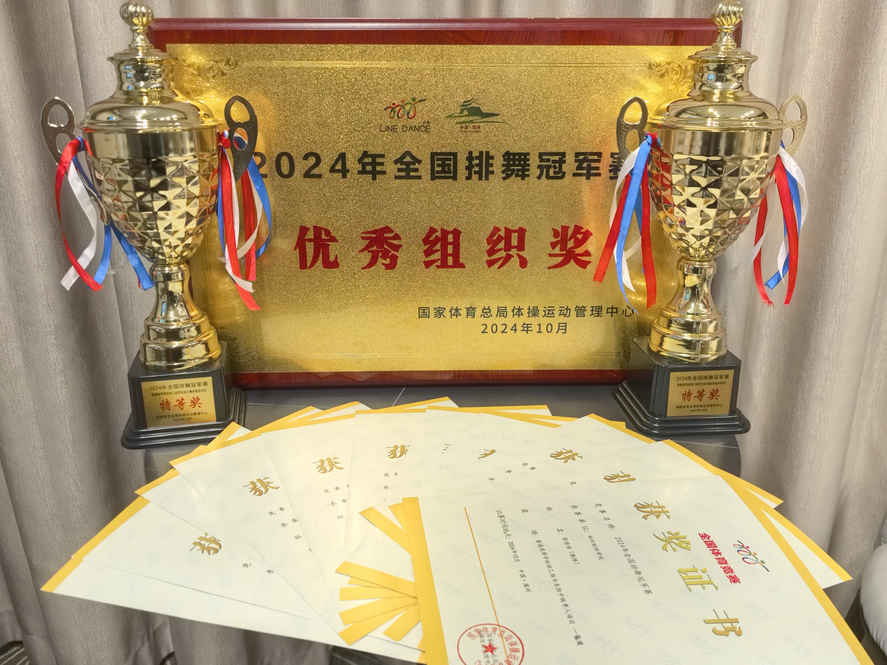 10月29日,由国家体育总局体操运动管理中心主办,滦州市文化广电和旅游局承办,河北省体育局体操举重柔道运动中心、唐山市体育局和滦州市人民政府支持的2024年全国排舞冠军赛在河北滦州市开幕。beat365排舞队在此次比赛中表现优异,获得团体民族采风套路《美丽的地方》特等奖、团体规定套路《火辣热舞》特等奖,在单人初级、中级比赛中荣获特等奖两项和一等奖四项,此外,beat365还在此次比赛中荣获“优秀组织奖”。