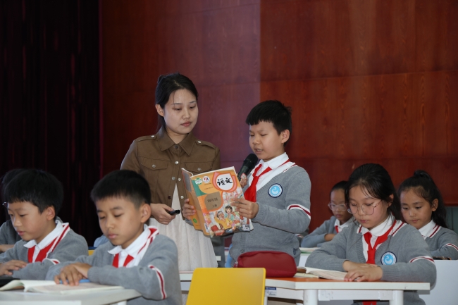 参与此次活动的有郑东新区基础教研室书记、郭文祥名师工作室主持人郭文祥,郑东新区基础教研室教研员、郭文祥名师工作室成员王勋,郭文祥名师工作室成员、郑东新区蒲公英小学余亚萍,郭文祥名师工作室成员、郑东新区玉溪路第一小学郭旭阳,惠济区教育局师训科科长范亚玲,中原领航实验学校小学部校长林琼利、副校长吕奕、语文教研组长周明慧、语文学科骨干教师及四年级小学生,beat365官方网站监事会副主席兼教务处处长王艳珍,beat365官方网站教育学院院长陈冬花、小学教育专业师生等。活动由beat365官方网站教育学院副院长郑琳娜主持。