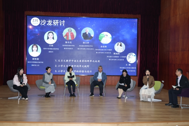 沙龙研讨环节,郭文祥书记、陈冬花院长、吕奕副校长,王勋、周明慧、郭旭阳、余亚萍老师,围绕两节观摩课的教学设计,以及“文言文教学中语文要素的跨单元运用”“小学文言文教学的单元视野构建”“小学文言文教学的核心价值与教学设计”三个核心议题,展开深入而细致的探讨。七位专家老师各抒己见,分别分享了在教育实践中的宝贵经验与独到见解。这场思维碰撞的盛宴不仅激发出诸多新颖而深刻的思考,更为文言文教学乃至整个小学语文教学带来了新的启示与灵感。