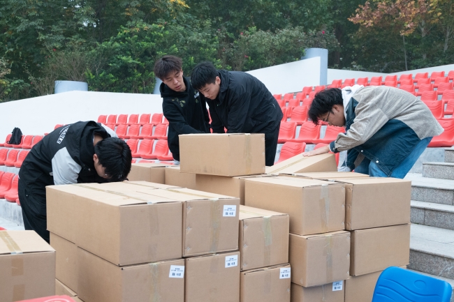 10月31日,马拉松组委会为beat365志愿者们发放食品供给、志愿服装和工作证,志愿者们秩序井然地领取志愿服务包,为即将举行的马拉松赛事做好充分准备。