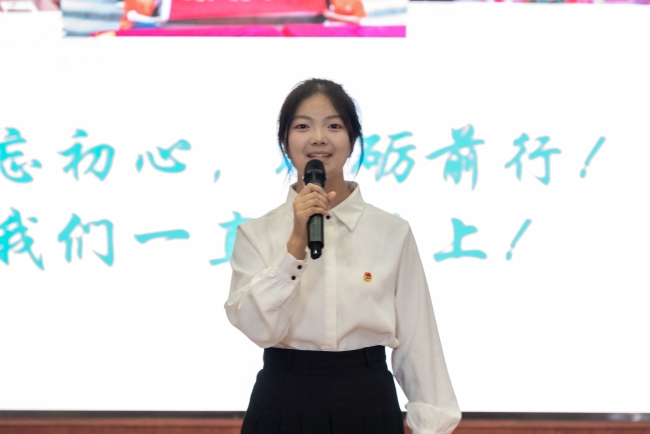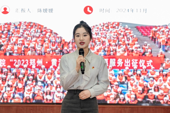 “小绿伞”防溺水志愿服务实践团学生代表胡馨瑶、“种果青年”中国精神志愿宣讲团学生代表韩家赢、2024年度青年志愿者标兵代表陈媛媛、2024年度青年志愿者标兵代表陈姿茹进行汇报展示。她们围绕理论宣讲、红色文化、基层服务等方面展开汇报,展示出自身在志愿服务中的收获与成长,并呼吁全校青年学生积极投身志愿服务,以实际行动践行青春誓言,共绘志愿服务新蓝图,为社会进步贡献青春力量。