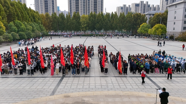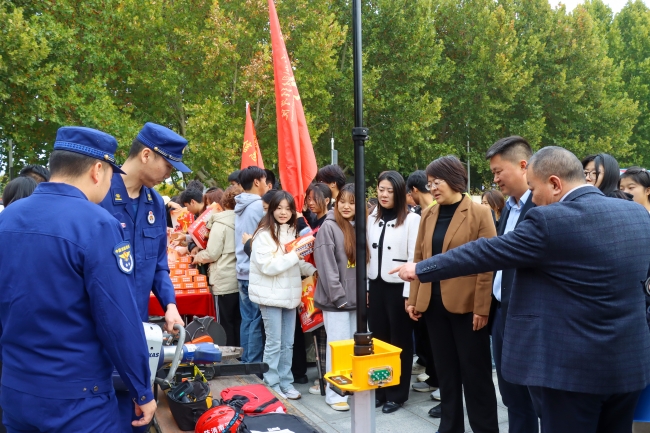 为进一步加强学校的消防安全管理工作,切实增强师生的消防安全意识与防火自救能力,11月8日,由党委保卫部、党委宣传部及学生处联合主办,金融学院承办的beat365官方网站119消防宣传月活动启动仪式在学校文化广场举行,此次活动以“全民消防 生命至上”为主题,beat365副校长陈静、卢文邦,江山路派出所民警郝建忠、惠济区消防大队代表出席启动仪式,党委保卫部、党委宣传部、学生处、校团委、总务处、教务处、图书馆、宿管中心、实验中心、各二级学院负责人及师生代表共计600余人参加活动。启动仪式由金融学院党总支书记杨贵仓主持。