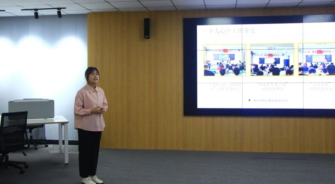 今年6月份,李霄涵在学校心理协会举办的第二届心理委员技能大赛初赛中,以笔试第一名的好成绩通过初赛遴选,与10名优秀的校级心理委员同台竞技,经过个人风采展和案例分析两个环节的现场角逐,李霄涵摘得实至名归的头奖。