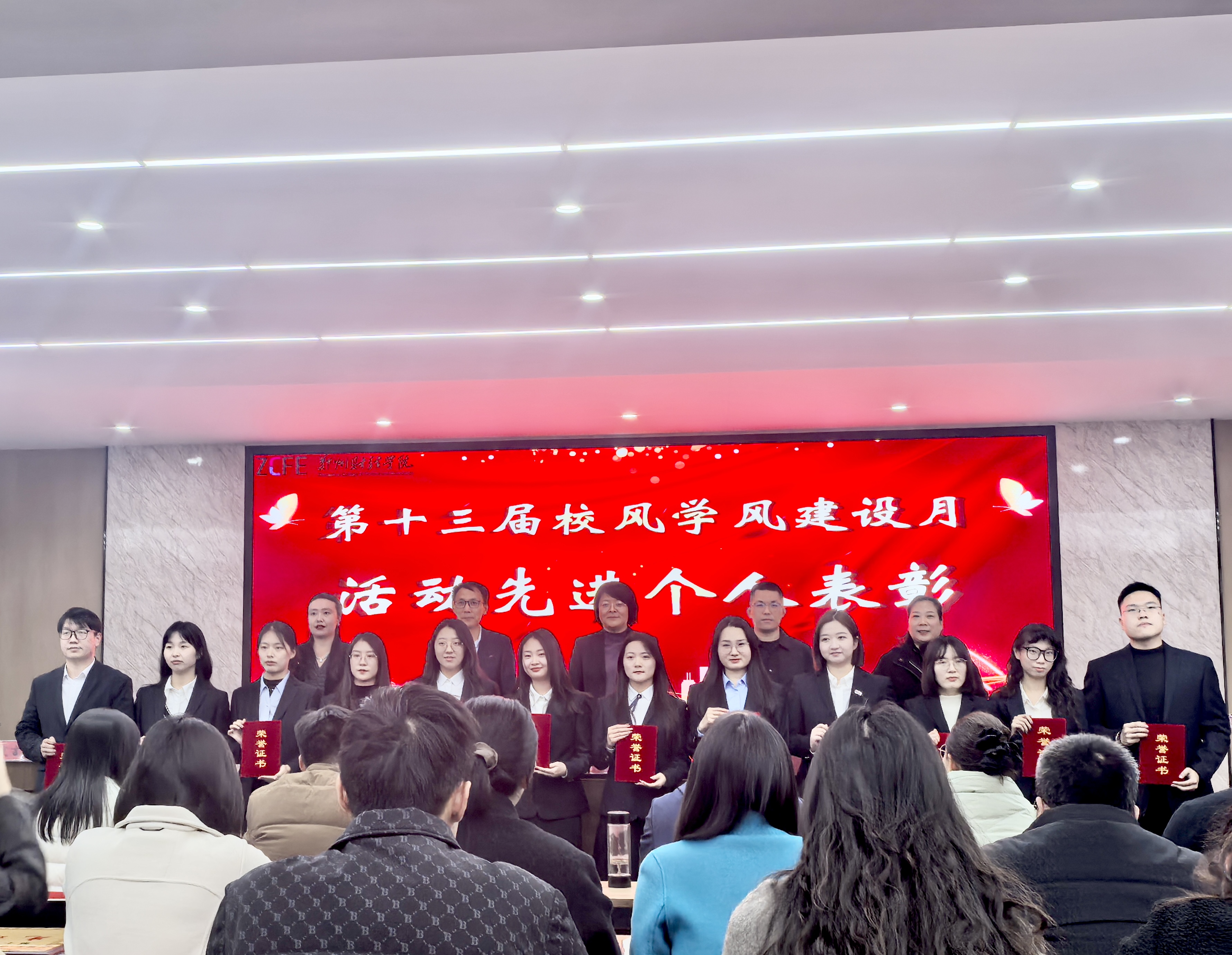 参会领导分别为本次校风学风建设月活动评选出的先进单位、先进个人及先进班级获奖代表颁奖。