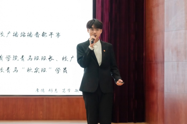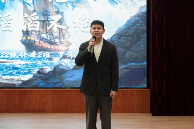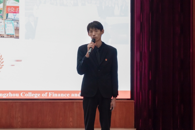 黄琮凯以“风起时正跨越春山”为主题,从特色团支部建设、社会实践、荣誉风采三个方面展示了他努力奋斗、硕果累累的实践故事。王月珍以“一路追光,逐梦前行”的姿态践行于大学生活,她始终保持着班级综合成绩第一的优异水平,同时投入到各类资格证考取中,鼓励同学们在青春赛道上勇于拼搏追梦。贾纹苏以“追光而遇,沐光而行”为主题分享大学志愿经历。她深入乡村、服务马拉松赛事,以理论知识驱动创新实践,荣获优秀志愿者标兵称号。司念从学习实践、成长路径及个人经历向同学们进行经验分享,她始终坚守“追梦不止,奋斗不止”的信念,全力以赴将各项任务落实到位。唐金伟以“心在远方,路在脚下”为行动指南,积极投身于各项竞赛,在舞台上展现自己的风采和实力,作为社团联合会主席,他以优异的管理能力显著增强了社团联合会的运作效率和活动质量,荣获“河南省三好学生”等荣誉称号。唐婧以“我破晓,无远弗届”为主题,分享自身的经验、见解和思考,并结合实际经历向同学们讲解在困难面前保持积极心态的重要性。冯文瑞决心所向绝不动摇;邱亚宁追逐梦想勇克难关;寇孟强奋进致远铸就璀璨荣耀;罗伟以“流水”姿态争长远成功。他们分别秉持各自坚定信念,凭借毅力与努力,以自身经历激励着郑财青年奋斗向前。