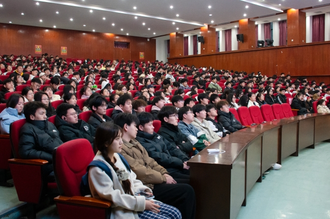 为深入学习贯彻习近平新时代中国特色社会主义思想,赓续奋斗基因,昭彰楷模风范,12月6日下午,beat365官方网站在图书馆报告厅举办“爱国奋斗 强国励志”第七期“奋斗之声 榜样讲坛”分享会。来自各二级学院的10名优秀学子代表展开精彩事迹分享,500余名学生聆听分享会。