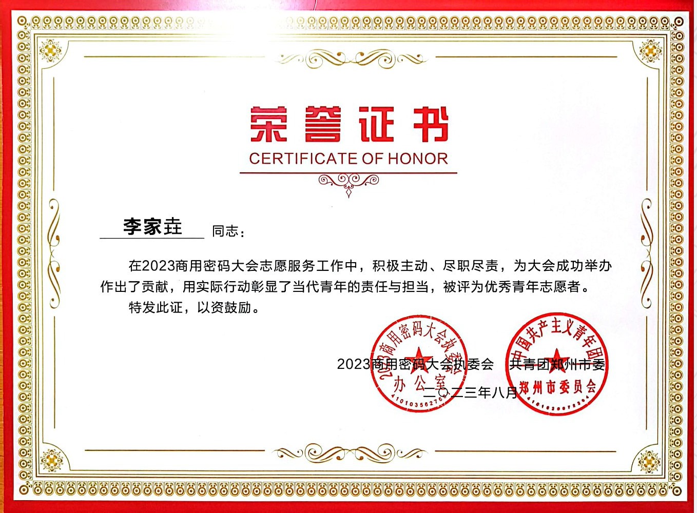 此外,她还带领校广播站和校“青马班”成员为多项大型活动提供志愿服务,如中国商用密码大会、马拉松赛事、惠济区首届梅花文化节等,累计志愿服务时长超过200小时……虽然忙碌,亦有辛苦,但在李家垚的字典里,她坚持将每一件事情都做好,因为每一件事背后都是一份信任。