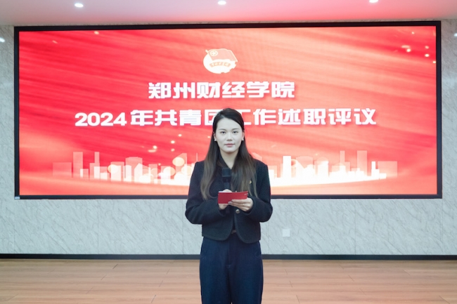 会计学院团总支书记牧亚可细致阐述上一学期的工作历程与学院成绩,同时分享所遇挑战。她分别从加强思想引领、聚焦组织建设、推进学风建设、丰富校园文化等方面展开讲述,进一步展望未来工作方向,并制定出有针对性的工作规划和改进策略。