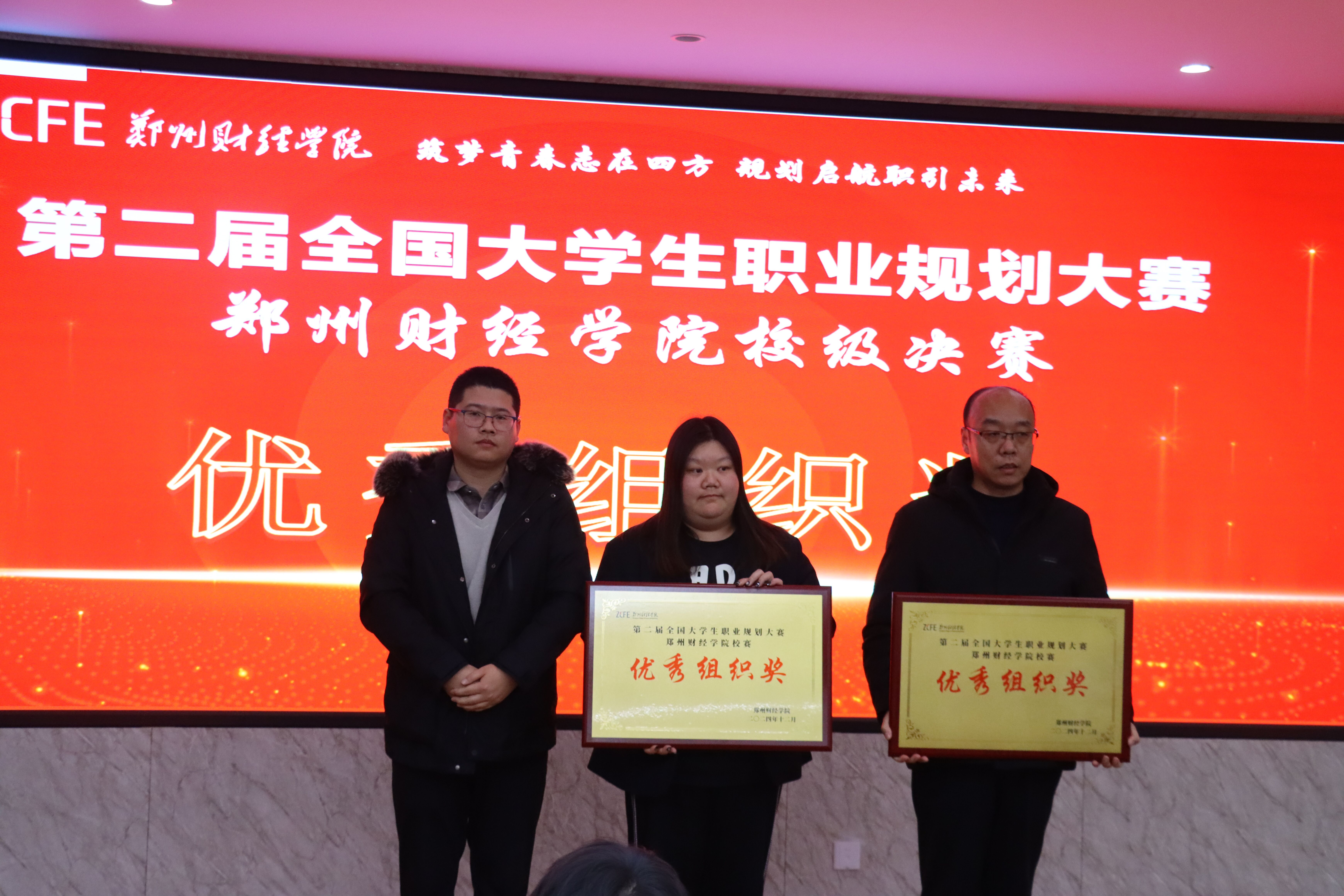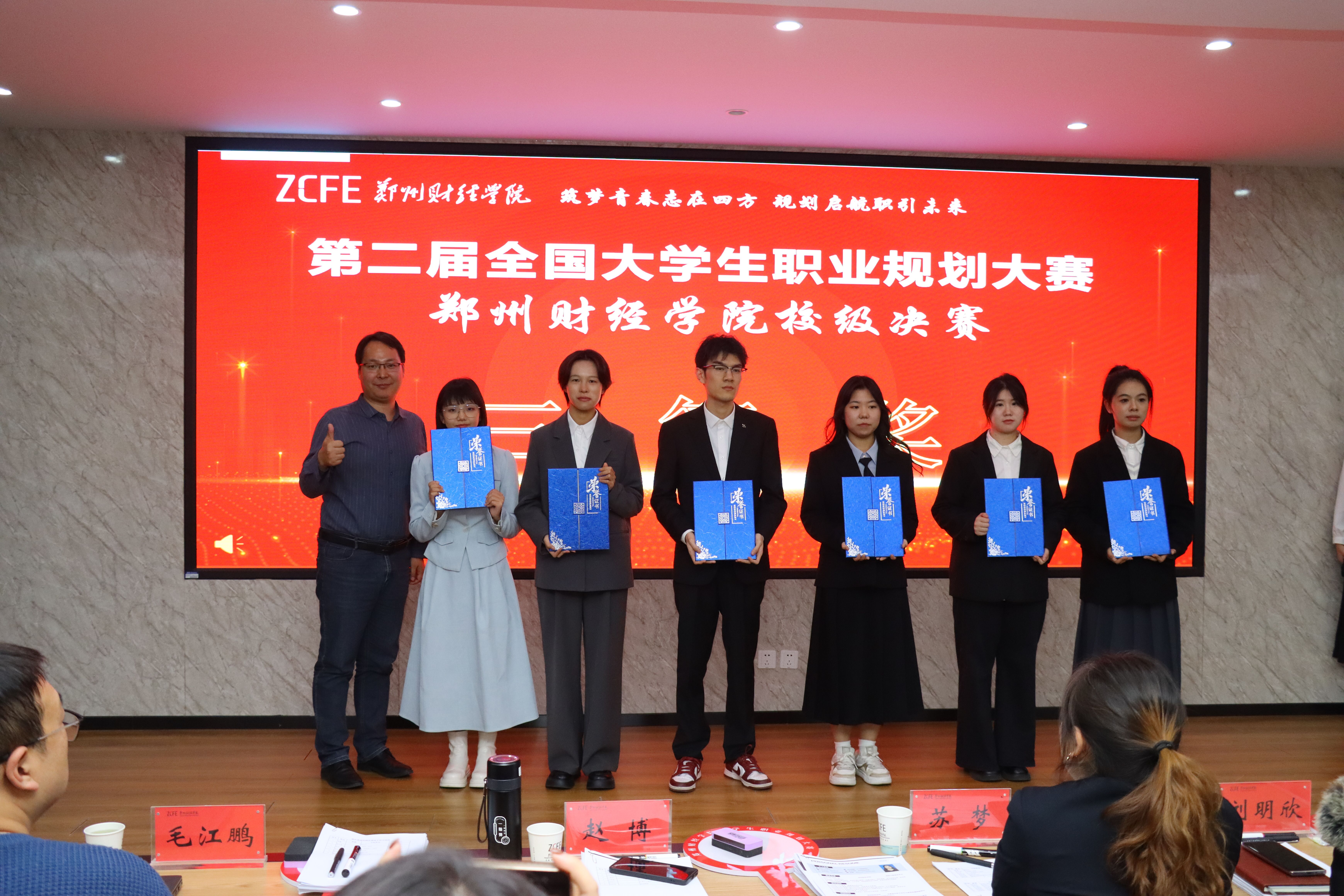 对自我认知、职业环境分析、职业目标确立以及路径规划等进行精彩讲解。评委们基于选手的展示内容及目标职业进行现场提问和打分,并对作品及展示过程中存在的问题给予指导意见。最后,经过激烈竞争,现场评出一、二、三等奖及优秀组织奖,并进行颁奖。![]()