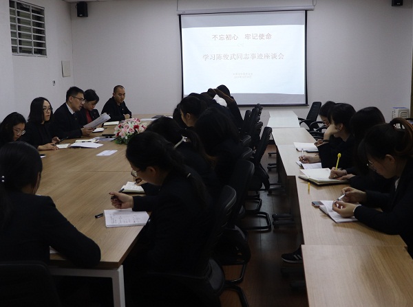 作为“不忘初心、牢记使命”主题教育的重要内容之一,12月19日下午4点,外国语学院党总支在S1-506会议室召开座谈会,组织全体教职工党员学习收看了陈俊武同志先进事迹并展开报告交流。会议由党总支书记闫静主持。