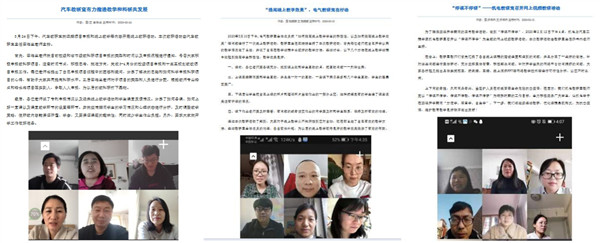 专业老师开学前就准备了多个教学平台、多种教学预案、多次实战演练、多类教学资料等。在实施线上教学过程中教师积极总结经验研讨交流。学院三个教研室每周二下午都开展网上教研活动专题,为实施网上教学和课堂教学相同效果而努力。线上教研活动各位老师谈了上教学活动和学生课堂反馈情况。分享了如何备课、如何上好一堂课以及课堂教学环节的设置等环节。并就疫情期间学生的学习情况和心理状态进行分析,及时调整教学策略,使所教内容能保证听懂、学会,又要保证课题的趣味性,同时减少学生作业负担。另外,要求大家就开学工作做好准备。
