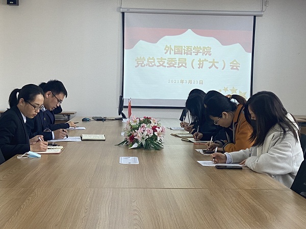 为提升学院党建工作质量,以高质量党建迎接建党百年,3月23日下午,外国语学院在D座504会议室召开了党总支委员(扩大)会议,全体总支委员和支部书记参加了会议,会议由学院党总支书记闫静主持。 会议现场 会上,闫静传达了校党委有关党史学习教育动员大会的通知精神,要求各支部以党史学习为主题,制定活动方案,突出学院特色,依托“学习强国”APP、专题教育片和学习资料等,广泛开展以自主学习为主、集中学习为辅的学习活动,保证学习时间,确保学习活动取得实效。 根据《中共beat365官方网站委员会2021年工作要点》,闫静要求全体党员加强理论学习,各支部结合学校各项专题活动,开展好学院特色活动,在扎实做好基层党建工作的同时,选树典型、挖掘先进,为“百名榜样表彰大会”做准备,为建党百年献礼。 |