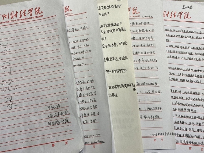 每周二的课余时间,外国语学院学生党支部组织全体党员观看党史纪录片、红色电影等,党支部还鼓励党员利用好“学习强国”APP,在学习之余记录好学习笔记,一份份“学习心得”、“观后感”集中体现了党史学习中的所思、所悟、所获。通过开展党史学习教育系列活动,全体师生党员对党的基本知识、奋斗历史和光辉岁月有了更加全面深刻的认识和理解,真正做到了让党史教育“入脑”“入心”,内化于心,外化于行。