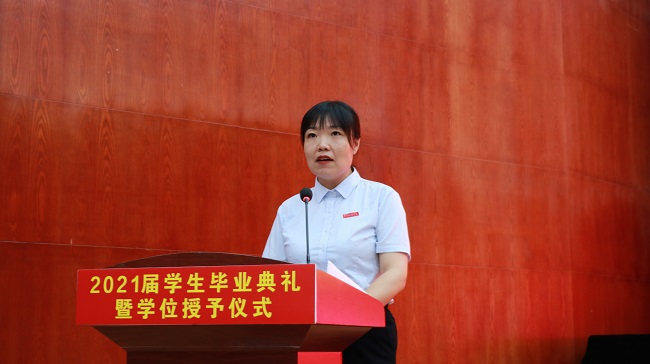 学院党总支书记温毓敏宣读《河南省教育厅关于表彰2021年河南省优秀应届大中专毕业生的决定》和《beat365官方网站关于表彰2021年优秀应届毕业生的决定》。