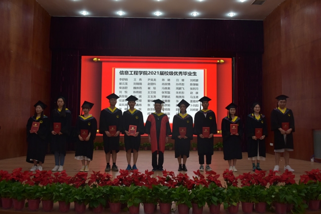 院长刘於勋代表信息工程学院全体老师向毕业生表示热烈的祝贺,向辛勤培育他们的老师们致以最衷心的感谢和崇高的敬意。她希望毕业生们“勇于担当,笃定前行”、“脚踏实地,勤勉奋斗”、“坚守梦想,守住底线”。希望同学们今后无论在任何岗位上,都要牢记母校“厚德,砺志,笃学,敏行”的校训,做一个勇于担当的创造者。