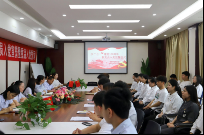 为庆祝中国共产党成立100周年,营造爱党信党跟党走的浓厚氛围,6月21日,管理学院在C栋608室举办“党建于行”入党宣誓仪式。学院党总支书记袁清、团总支书记李爽、教工党支部书记赵珂珂、学生第二党支部书记郝春海,以及本期新党员代表和部分入党积极分子、发展对象参加会议。仪式由学院党总支副书记路艳娜主持。