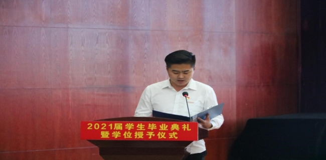仪式在庄严的国歌声中拉开了帷幕。金融学院副院长张丽宣读了《关于授予金融学院2021届普通本科毕业生学士学位的决定》。
