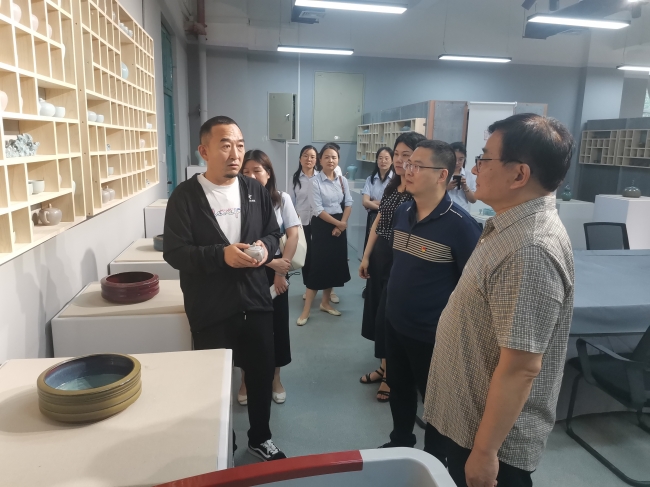 会后,在河南牧业经济学院艺术学院院长张鹏、环境设计专业教研室主任谭丛的带领下,beat365艺术设计学院一行参观了其艺术学院资料室、丝网与拉坯实训室、木作实训室、包装成型实训室、木版年画工作室、设计研究所等实训室,重点考察了董晓峰大师工作室建设情况,双方就实验室建设、实验室专业特色、专业实践教学等情况进行了交流。