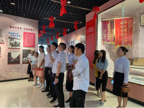 为庆祝中国共产党成立100周年,7月7日,艺术设计学院党总支副书记王辰辉、学院20级辅导员和教师代表带领艺术设计学院党史学习教育实践团来到林州市石板岩镇参观“扁担精神”纪念馆,学习林州人民不怕吃苦,艰苦创业的“扁担精神”。