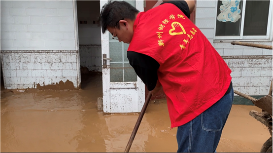 19级广告学专业王鑫同学帮助受灾村民清理淤泥